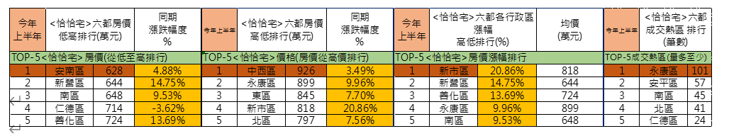漲跌幅-六都上半年<恰恰宅>漲價排行!!!