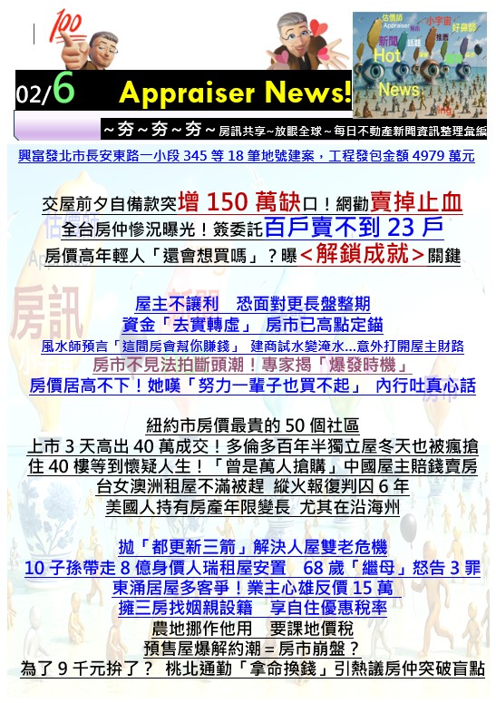 ~天天抱報~日日好報~估價師公會帶您看不動產界發生的大小事~愛您哦~