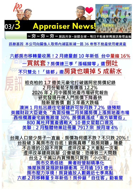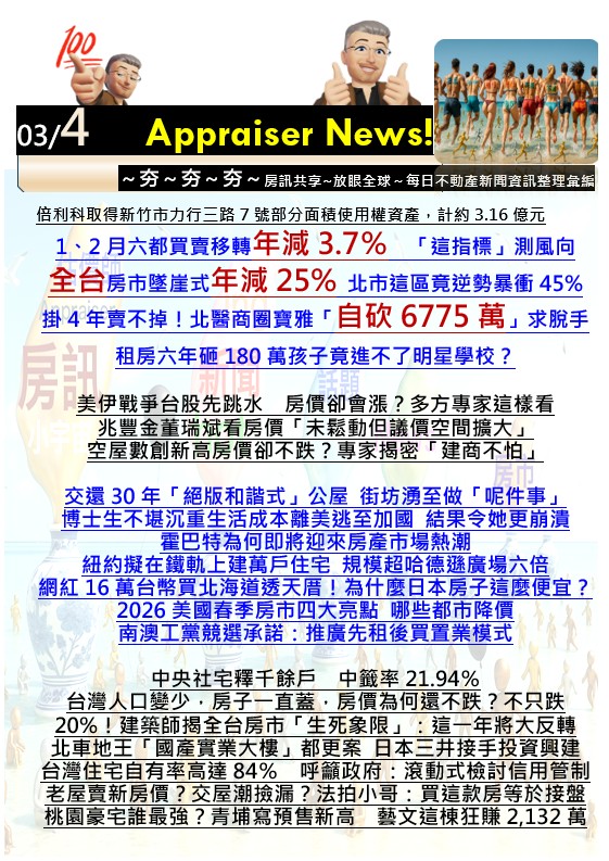 【HOT News!!】【上市公司資產交易處分等公告】【精彩話題】【世界各國房聞】