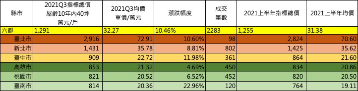 加油仰天區-六都Q3/2021<恰恰宅>房價!